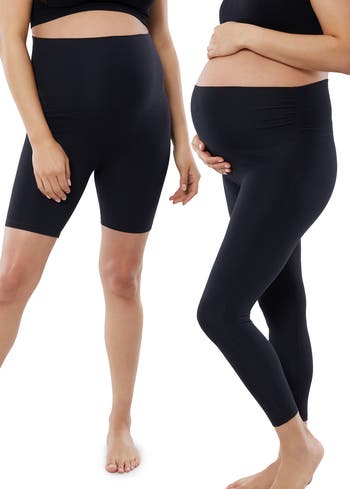 Fold down or pull up the front panel on these maternity bike shorts and 7/8 leggings according to what feels best on your growing bump. This ultrastretchy set doubles your options to stay comfy in any weather.