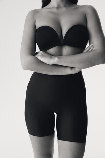 Shaping bikers in microfiber with a light sculpting effect on tummy, thighs, and seat. High waist, lined gusset, and laser-cut edges around legs for seamless comfort and minimal visibility under clothes.