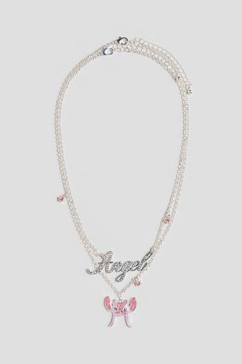 Metal chain necklaces with rhinestone-embellished pendants. Adjustable length with a trigger clasp.