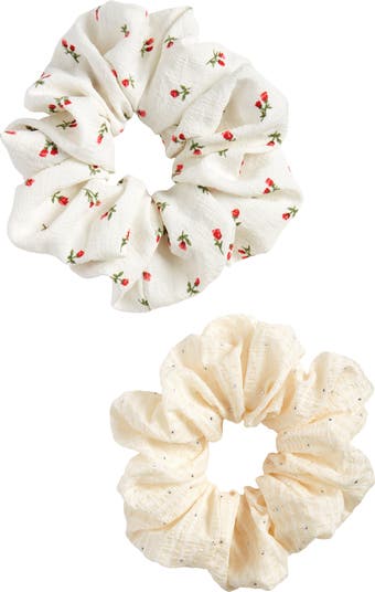 You'll always have a scrunchie to spare with this two-pack that pulls your pony back in fresh flowers or crystal bling.