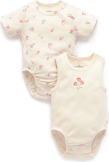 2 Pack Short Sleeve Ribbed Bodysuit Floral