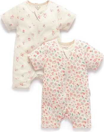 2 Pack Short Sleeve Zip Romper Floral