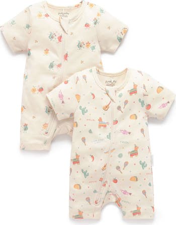 Our best selling Short Zip Romper, now available in limited edition prints! Our 2 Pack Short Zip Romper features one limited edition growsuit in a Purebaby illustrated print and a second striped romper. Designed for day to night wear, our Short Zip Rompers are a wardrobe staple. Made from the softest 100% Cotton for a soft and gentle touch against your baby's delicate skin. Featuring short sleeves and legs to keep your little one cool and comfortable.