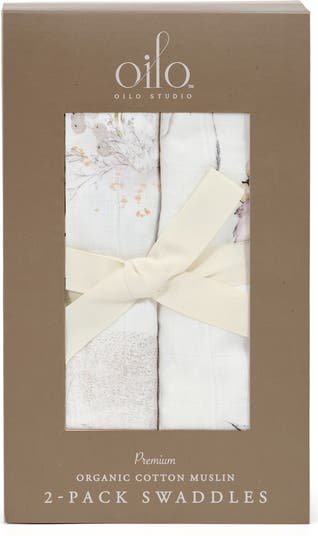 A pack of two lightweight and breathable cotton muslin blankets will wrap baby in comfort and are sized to keep them cozy throughout the toddler years.