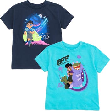 Your kid is ready for a day filled with Disney magic in this cute 2 pack of Disney shirts! These comfy short sleeve tees feature vibrant and colorful Disney artwork your little one will love to wear! Choose from classic designs of favorite characters like Mickey Mouse and his friends Donald Duck, Goofy, and Pluto, Woody and Buzz Lightyear from Toy Story, Maui and Moana, Luca, Simba from The Lion King, Kion from Lion Guard, Sulley, Mike Wazowski, and Boo from Monsters Inc, Lightning McQueen from Cars, Jack Skellington and Zero from Nightmare Before Christmas, Flash, Axl, and Piston from Firebuds, Elio and Glordon, and Winnie the Pooh, Tigger, Eeyore, and Piglet! Soft and stylish, these cool Disney tshirts are made of 100% cotton for a comfortable day of fun and adventure!