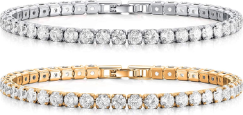 A girl can never have too many diamonds! Subtle and classic, this tennis bracelet is designed to make every brilliantly cut crystal diamond shine! Wear these elegant Gold Bracelets with an evening gown or day outfit.