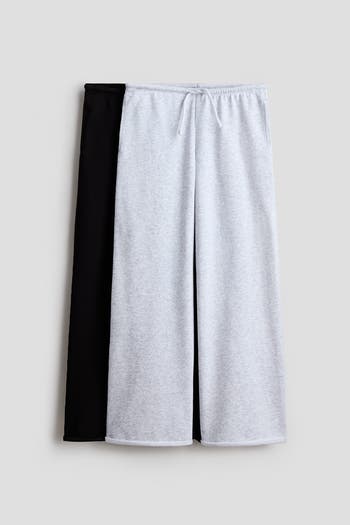 Sweatpant joggers in lightweight fabric. Elasticized, drawstring waistband, welt side pockets, and wide legs with rolled-edge hems.