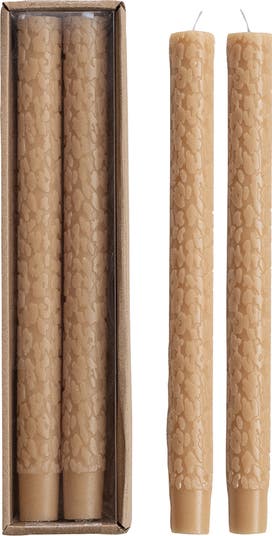 2-piece 10" Unscented Animal Print Taper Candles in Box, Tan