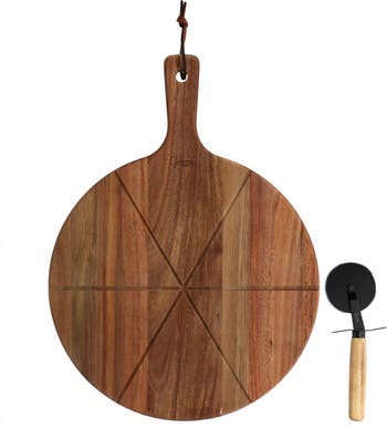 2 Piece Acacia Wood Serving Board and Pizza Cutter Set
