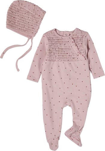 It doesn't get any cuter than this. Our baby girls' footie set has it all: dainty smocking, feminine ruffles, and a charming cherry-themed print. Not to mention the premium fabric -- 100% pure cotton, famous for soothing softness and airy, breathable comfort. Perfect layette and baby shower gift.