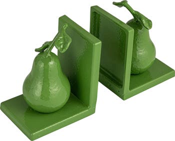 • A charming pair of bookends featuring pear designs in a vibrant green finish