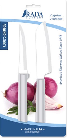 The Rada 2 Piece Cook’s Choice Knife Set includes two of Rada’s most versatile kitchen tools - the Super Parer and the 4.75-Inch Cook’s Utility Knife. Each features a surgical-grade T420 high-carbon stainless steel blade, hand-sharpened to a razor-sharp edge for precision and control. Made in the USA, this durable and balanced set handles everyday prep tasks with ease.