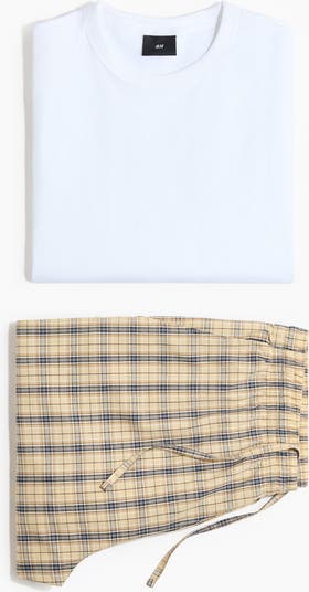 Loungewear set with a T-shirt in cotton jersey and a pair of shorts in cotton poplin. T-shirt with a round, rib-trimmed neckline and a straight-cut hem. Shorts featuring an elasticated waist with a concealed drawstring, side pockets and a patch back pocket.
