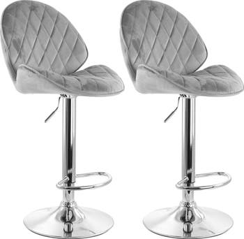 Add a stylish touch to your home bar or kitchen counters with the Elama 2 Piece Tufted Velvet Adjustable Bar Stool in Gray with Chrome Base. This chair is uniquely shaped for a comfortable fit while you're seated. The Elama adjustable chair is also crafted from quality and sturdy metal for a strong and long-lasting design.