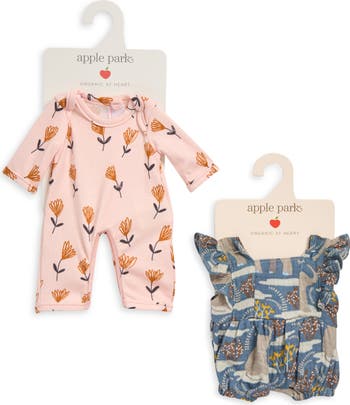 Your child will have endless fun outfitting their favorite Apple Park dolls (sold separately) in floral one-piece pajamas and a whimsical romper. The darling outfits are crafted with supersoft organic cotton and feature easy closures for frustration-free outfit changes.