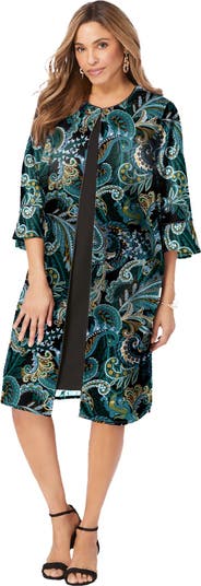 Jessica London 2-Piece Duster Jacket Dress, Alternate, color, Frost Teal Paisley