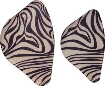 - A refined set of two organic-shaped enameled metal trays featuring a striking striped design in cream and plum, accented with elegant gold edges