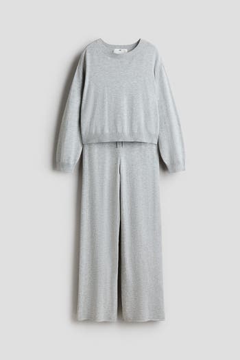 Set with a jumper and pair of joggers in a soft, fine knit. Jumper with a round, rib-trimmed neckline, gently dropped shoulders and ribbing at the cuffs and hem. Joggers with a rib-trimmed, elasticated waist decorated with a bow at the front, and straight legs.