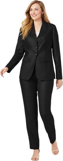 The crepe texture of this pantsuit suit gives it a sophisticated yet chic look. Classic shawl-collar jacket tops flat-front pants with comfortable side-back elastic waist. Front zipper and hook-and-eye closure. Side-seam pockets. Fully lined, textured crepe.
