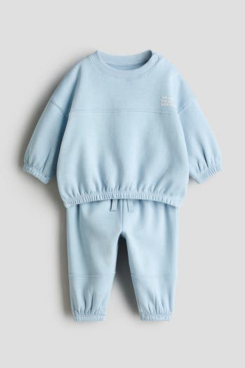 Set with a top and pair of joggers in sweatshirt fabric with a soft, brushed inside. Top featuring a round, rib-trimmed neckline with press-studs on one side (except in sizes 2–4Y), yoke at the front with a small text print, and dropped shoulders. Covered elastication at the cuffs and hem. Joggers featuring an adjustable, elasticated waist with a decorative drawstring, and covered elastication at the hems.