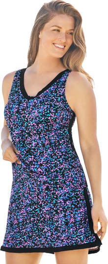 Blend sporty design with eye-catching contrast trim for a stylish beach look with our 2-Piece Skirtini Set. The V-neck top flatters and gives you plenty of support with a power-mesh shelf bra, plush elastic underband, soft sewn-in cups and wide straps. A chic A-line swim skirt with 6-inch side slits and attached bike shorts lends you extra coverage and mobility.