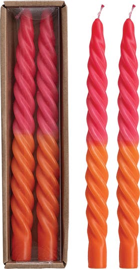 2-Piece Unscented Twisted Taper Candles, Fuchsia and Orange Ombre Color