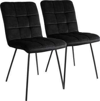 Add a touch of elegance to your living room or work space with the Elama 2 Piece Tufted Chair in Black with Metal Legs. This set of chairs is crafted with a velvet square stitch designed upper and sturdy metal legs. This set of two accent chairs is perfect for relaxing on in front of the tv or getting some work done in style in your home office. Designed with durability and easy assembly in mind.