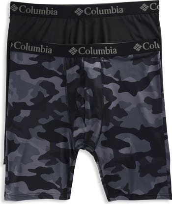 A contoured fit and flat, anti-chafing stitches ensure you'll stay comfortable all day in these tag-free, breathable boxer briefs from Columbia. Available exclusively at DXL in proper proportions that offer full coverage for Big and Tall guys, they're crafted in a polyester and spandex blend that's designed to keep you cool and allow you the freedom to move without restriction. The 2-pk set features one camouflage-patterned pair and one solid.