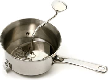 - 2-quart stainless steel food mill for purees, sauces, and soups