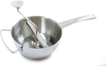 The Norpro 2 Quart Stainless Steel Food Mill with 2 Discs is perfect for creating smooth sauces, soups, purees, and baby food. It comes with interchangeable fine and coarse discs, a hand crank, and durable stainless steel construction for everyday kitchen use.