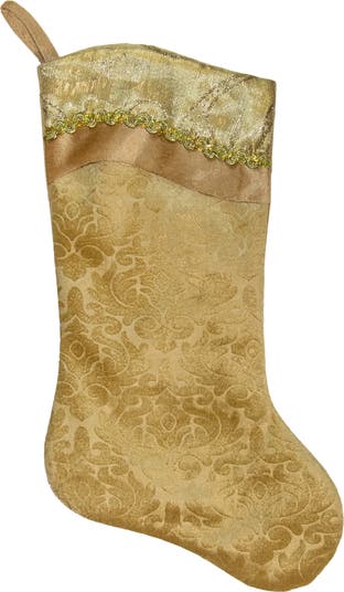 20.5" Gold Etched Velvet Christmas Stocking with Glitter Print and Metallic Trim