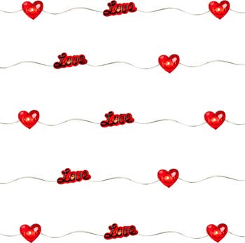 Set hearts aglow this Valentine's Day with our 'Love' and heart-shaped fairy lights. The 'Love' and red faceted hearts each house one warm white micro LED light. The facets allow the light to reflect beautifully, providing a warm cozy glow. The versatile silver-colored copper wire is durable and highly flexible, allowing you to bend and shape the lights quickly and easily for all your decorating needs. Product features: Color: warm white bulbs / silver copper wire Red heart-shaped and 'Love' light covers Number of bulbs on string: 20 Bulb size: micro fairy Bulb type: LED Spacing between each bulb: 4" Lighted length: 6.25' Total length: 7.5' 15" lead cord Additional product features: LED lights use 90% less energy Bulbs stay cool to the touch For indoor use only Requires (3) 'AA' size batteries - not included Convenient on/off switch on the battery pack Non-replaceable bulbs Cannot connect multiple sets together Dimensions: Hearts: 0.5"H x 0.75"W Love: 0.5"H x 1"W Material(s): plastic/wire
