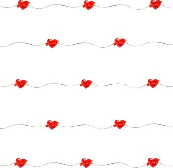 Set hearts aglow this Valentine's Day with our heart-shaped fairy lights. The red faceted hearts each house one warm white micro LED light. The facets allow the light to reflect beautifully, providing a warm cozy glow. The versatile silver-colored copper wire is durable and highly flexible, allowing you to bend and shape the lights quickly and easily for all your decorating needs. Product features: Color: warm white bulbs / silver copper wire Red heart and arrow light covers Number of bulbs on string: 20 Bulb size: micro fairy Bulb type: LED Spacing between each bulb: 4" Lighted length: 6.25' Total length: 7.5' 15" lead cord Additional product features: LED lights use 90% less energy Bulbs stay cool to the touch For indoor use only Requires (3) 'AA' size batteries - not included Convenient on/off switch on the battery pack Non-replaceable bulbs Cannot connect multiple sets together Heart dimensions: 0.5"H x 0.85"W Material(s): plastic/wire