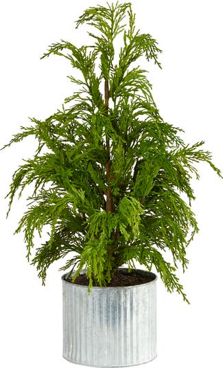 20-in Cedar Pine Natural Look Artificial Tree in Decorative Planter