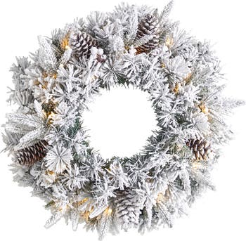 20-in Flocked Artificial Christmas Wreath with 35 Warm White LED Lights