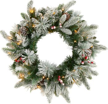 20-in Flocked Mixed Pine Artificial Christmas Wreath with 50 LED Lights, Pine Cones and Berries