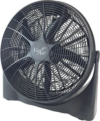 Vie Air is safe and has reliable performance with exceptional value and thoughtful innovations. With it's "Turbo Fan" design, it allows for maximum air flow, optimal circulation and quiet operation. Made out of light weight plastic, it's easy to move and reposition this ventilation fan where ever you like. The 3 speed control and tiling fan head allows for easy air flow management. This floor fan is ideal for living room or garage use and can be tilted to provide optimal air flow. Item Dimensions: 8.00" x 22.00" x 22.00" Item Weight: 3.00lbs