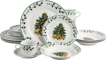 20 Piece Ceramic Christmas Tree Trimming Dinnerware Set