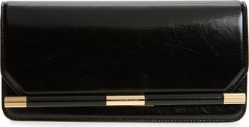 Cuff link-inspired hardware highlights the flap of this distressed calfskin-leather clutch made in a structured silhouette with room for all the night-out essentials.