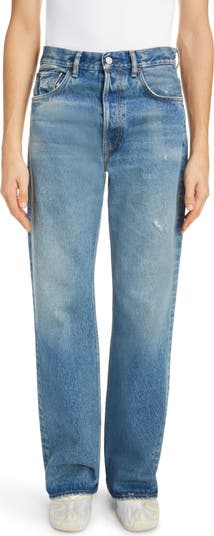 Once-rigid organic-cotton denim flaunts its battle scars on these relaxed-fit jeans cut in an easygoing wide-leg silhouette.