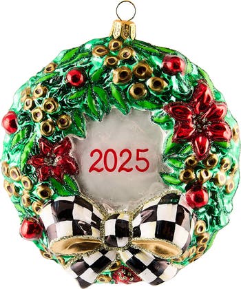 2025 Christmas Holly Wreath Glass Ornament