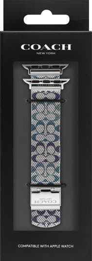 Give your Apple Watch a luxe makeover with a mesh watchband marked by a vivid monogram pattern for a signature flourish.