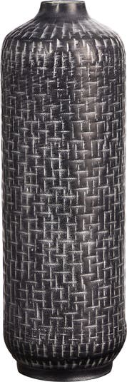 Looking for a new trendy vase for your faux flowers? Add it to this Embossed Cylinder Vase with a textured pattern throughout for an elevated look, bringing texture and depth to any space. Crafted from high-quality materials, this vase will last a while. With a height of 21", feel free to house any silk flowers of your choice.