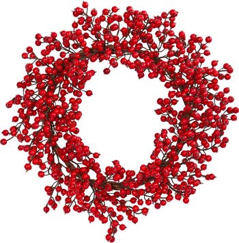 Many adorable red berries are woven together to create this playful berry 22” wreath. It may be tempting to pick off a faux berry to eat, but you should refrain--they only look real! It's a delightful choice to add your to holiday decorations.