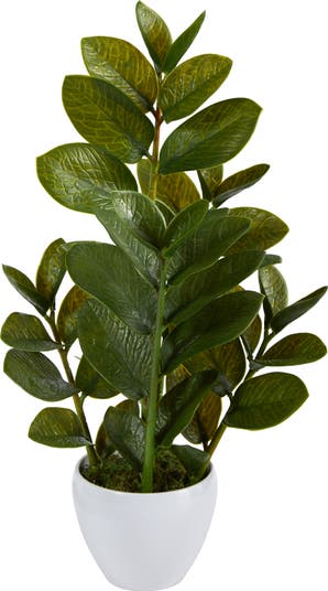 Social media's trendiest plant is here for you to enjoy, maintenance-free. This lifelike artificial plant removes the guesswork, allowing you to enjoy its' splendor without the upkeep. Thick, green leaves form feather-like foliage that brings depth and lines to spaces. Standing 22” from a white planter, this faux plant is the perfect accent for desktops and compact spaces. Recreate the African jungle look in your office, kitchen nook, bedside table, bathroom, or mantel.Silk plants are manufactured using synthetic materials, such as polyester material or plastic, and are well designed and constructed to be life-like in appearance. This item will need to be re-shaped when removed from the secure box to allow it to reach its fullest size. Your artificial plant will look beautiful for years to come; simply wipe clean with a soft dry cloth when needed.