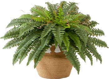 23-in Artificial Boston Fern Plant in Handmade Jute & Cotton Basket with Tassels DIY KIT