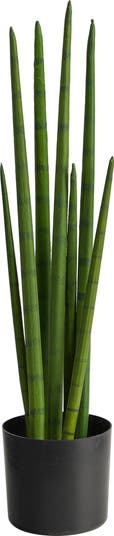 Shh.. this artificial snake plant is sure to complement your décor. Inspired by nature, staccato long fronds with naturally occurring detail arch upwards. If you're into a minimalist lifestyle, you will fall for this artificial plant. Assembled from high-quality materials, we guarantee this piece will last. Standing 23in. from a black nursery planter, house in any table that needs a touch of green. Perfect for an office, living room, or bedroom. Artificial plants are manufactured using synthetic materials, such as polyester material or plastic, and are well designed and constructed to be life-like in appearance. This item will need to be re-shaped when removed from the secure box to allow it to reach its fullest size. Your artificial plant will look beautiful for years to come; simply wipe clean with a soft dry cloth when needed.
