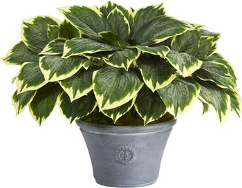 23-in Variegated Hosta Artificial Plant in Gray Planter