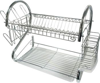 The Better Chef Dish Rack allows you to completely reorganize your kitchen dishware set up. Made of a metal construction, this dazzling dish rack can hold a large number of plates or bowls, and includes a mug stand and cutlery holder. Keep your kitchen neat as you clean, with the easy to access dish rack. The cutlery holder allows you to safely set aside knives of any size or shape. While the mug rack keeps any mugs or other cups out of the way as they dry up with ease. Make this attractive addition to your home kitchen today! Measures: 23.1 x 14.6 x 21.3 in. * Side Mounting Mug Stand and Cutlery Holder * Metal construction with attractive chrome plating * Non-marring silicone coated feet protectors * Includes: plastic draining tray, mug stand, and cutlery holder * Rust resistant design Item Dimensions: 23.10" x 14.60" x 21.30" Item Weight: 2.00lbs