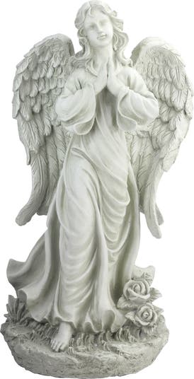 This angel statue is the perfect addition to your garden decor Features a beautiful angel holding her hands in prayer with roses next to her feet For indoor or outdoor use Dimensions: 24.5"H x 10.25"W x 12.5"D Material(s): polyresin